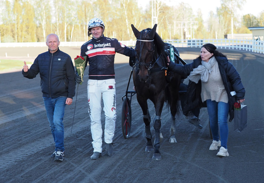 Stort grattis till kretsen kring hästen – ägare Torbjörn Selvåg, Birgitta Oleniusson Selvåg med flera samt skötare Signe Lindberg.
