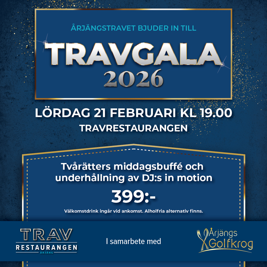 Travgalan är slut omkring 23.00 och Travrestaurangen stänger 02.00.